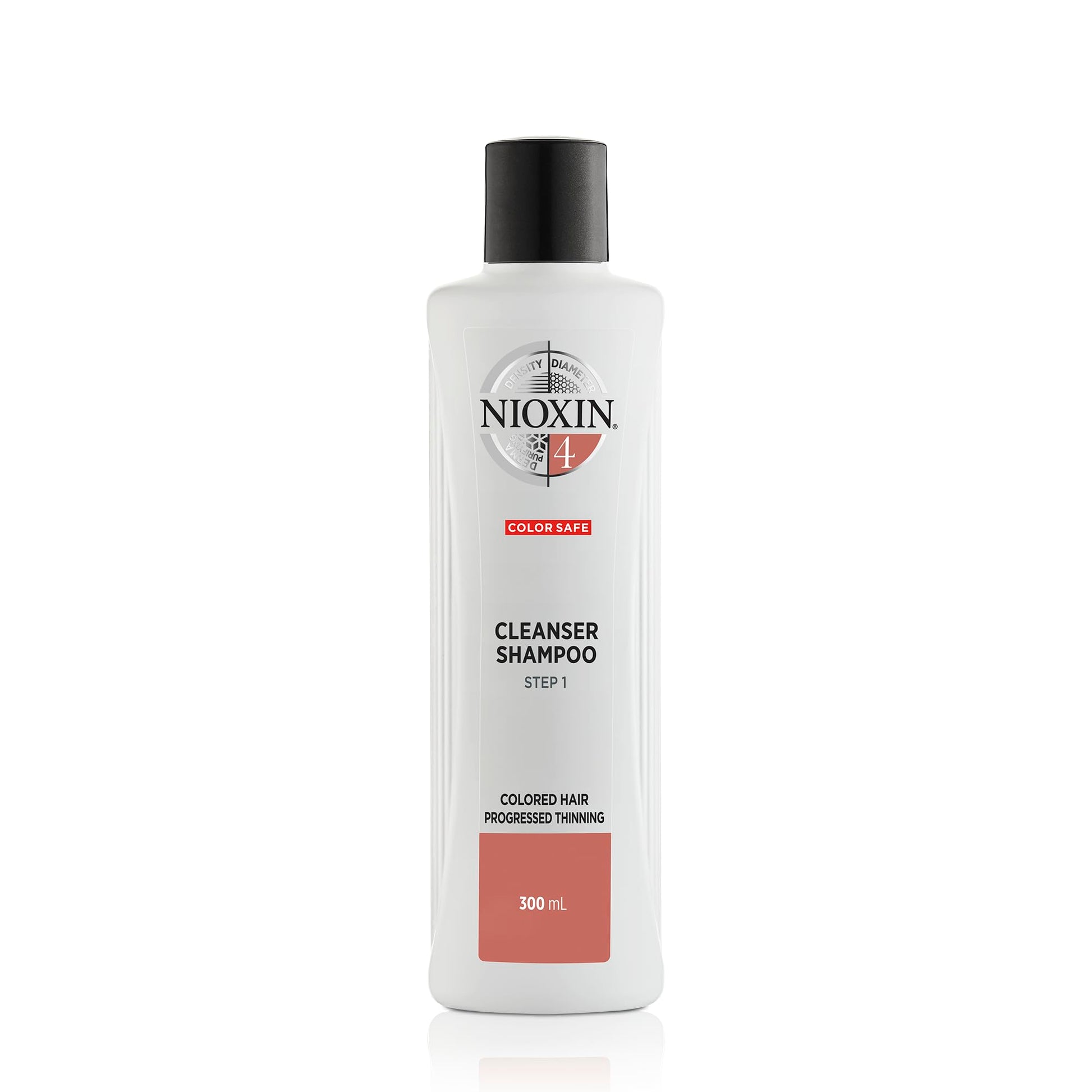 PREPARE THE SCALP AND HAIR for a complete hair thickening treatment with Nioxin System 4 for Color Treated Hair with Progressed Thinning. Thanks to its Pro-Color Shield technology, this professional hair product helps remove sebum, fatty acids and other environmental residue from the scalp and hair. Nioxin’s derma-purifying shampoo deeply cleanses the scalp and provides thicker, fuller-looking hair. Nioxin’s SHAMPOO CLEANSER is the first step of a three part Nioxin regimen, designed to strengthen the hair and amplify hair structure. PROFESSIONAL HAIR AND SCALP CLEANSER SHAMPOO for color treated hair with progressed thinning MOISTURIZES AND CLEANSES DRY SCALP for chemically treated hair to achieve thicker, fuller looking hair REMOVES follicle clogging sebum, fatty acids, and environmental residues from hair and scalp with Activ Renewal technology PREPARE HAIR AND SCALP for a complete hair thickening treatment starting with shampoo cleanser NIOXIN SHAMPOO CLEANSER is the first step of a three part Nioxin regimen, designed to strengthen the hair and amplify hair structure Award: Behind the Chair Stylist Choice Winner Favorite Thinning Haircare, 16 consecutive years For Best Results: Apply to wet hair, gently massage into scalp and hair, lather 1 minute, rinse thoroughly, use daily Use in combination with Nioxin System 4 Scalp Therapy Conditioner plus Scalp and Hair Treatment Enroll in Subscribe and Save to ensure you never run out!
