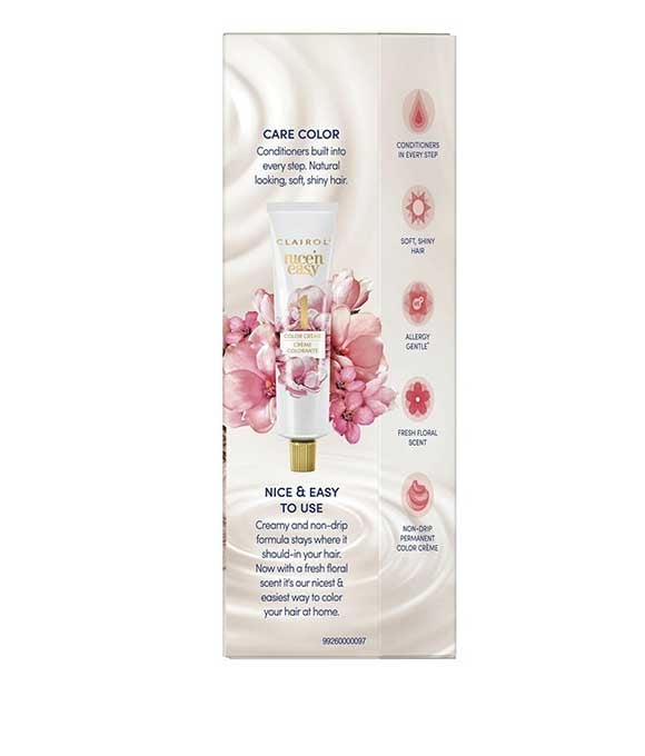 Clairol Nice'n Easy permanent hair colour creme provides an easy and quick way to refresh your look from the comfort of your own home. If you want to enhance the colour of your hair and make sure it stays perfectly true to you, Nice'n Easy Permanent Hair Dye in shade 10 Extra Light Blonde, delivers brilliant natural looking colour. This breakthrough hair colour creme has conditioners built into every step, ensuring that hair maintains its soft, silky, smooth feel throughout the colouring process. In addition to the beautiful results, the colour care formula offers an upgraded colour experience with a non-drip colour creme that smells like flowers, not ammonia. This hair dye gives you 100% grey coverage with real natural-looking tones.
