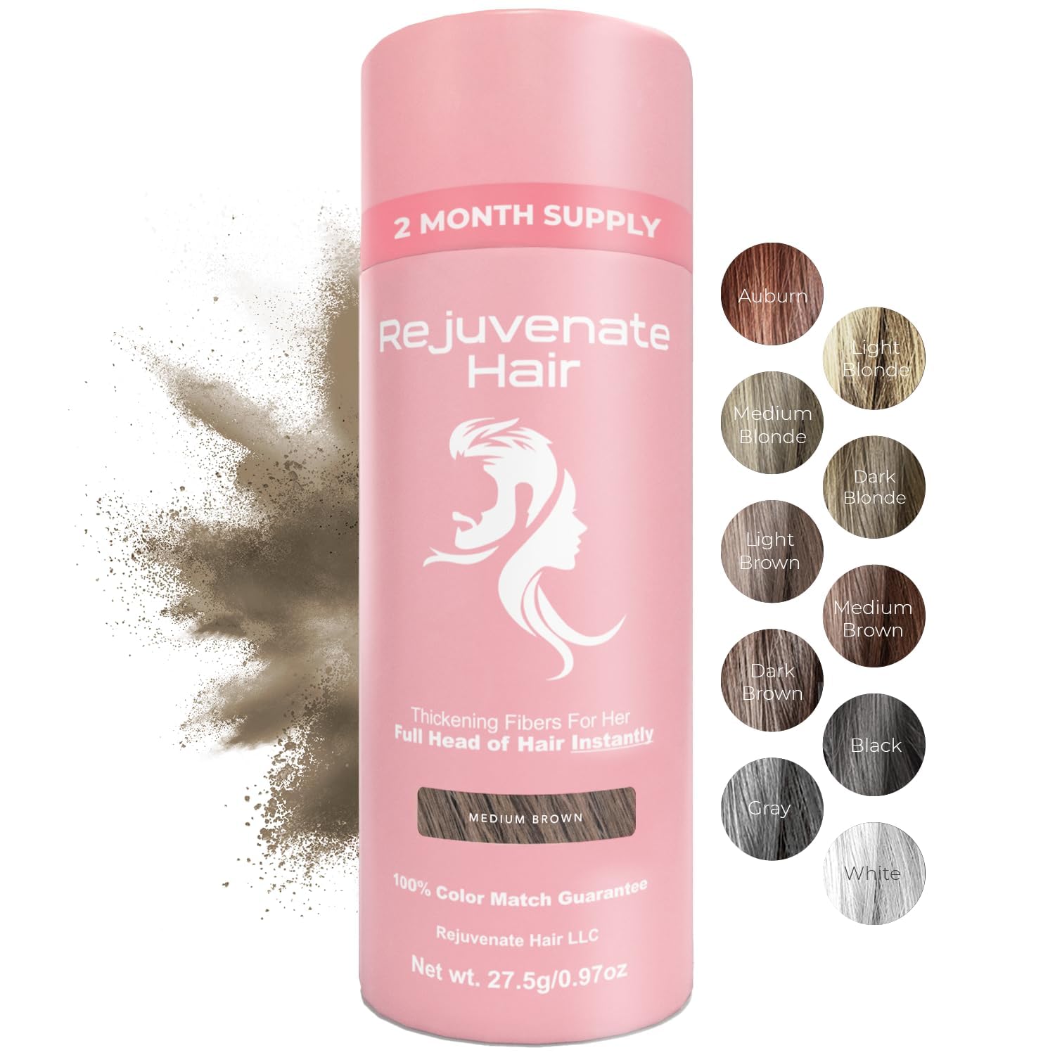 REJUVENATE Hair Fibers for Thinning Hair (Medium Brown), Undetectable Hair Powder for Women & 100% Natural Hair Building Fibers - Conceals Hair Loss - Bald Spot Cover Up Hair Powder, 2 Month Supply
