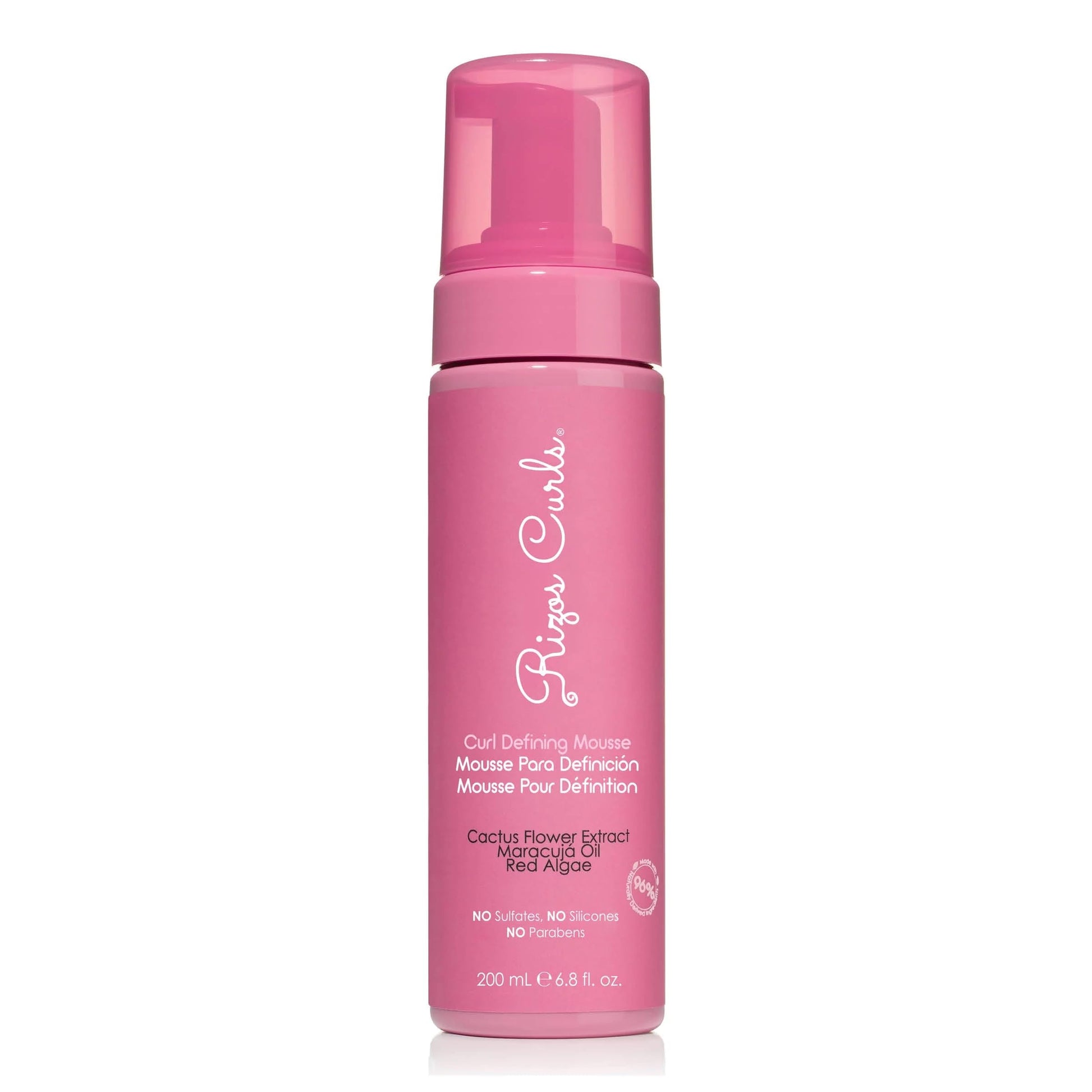 Rizos Curls Curl Defining Mousse, Hydrate & Define, Soft Hold for Volume & Definition, Frizz Free Shine with Coconut Water, Cactus Flower Extract & Maracuja Seed Oil, 6.8 oz
