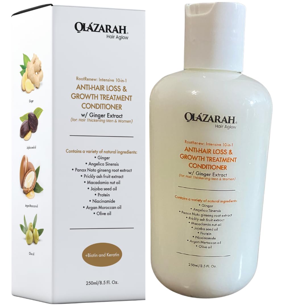 Details: RootRenew, the ultimate solution for both men and women seeking to combat hair loss and promote hair thickening! Our Intensive 10-in-1 Anti-Hair Loss & Growth Treatment Conditioner infused with powerful Ginger Extract is specially formulated to revitalize hair follicles, strengthen roots, and stimulate healthy hair growth. Packed with natural nutrients, this advanced conditioner nourishes and hydrates the scalp, reducing hair breakage and shedding while enhancing hair volume and thickness.